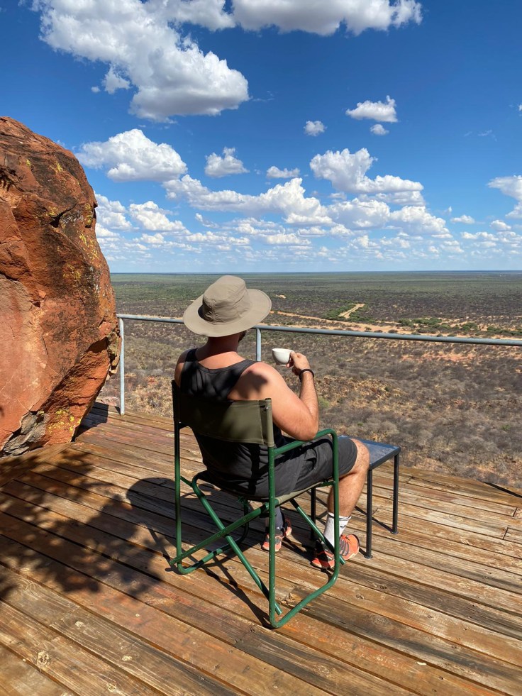 - Next Stop: Palmwag Lodge. Unser Fazit: ein interessanter Ort, eigener Nationalpark mit aufgrund des Wassermangels angepasst lebenden Tieren. Hier haben wir unser einziges Game Drive gemacht, welches sehr interessant war. An diesem Ort haben wir uns der Natur sehr verbunden gefühlt. Vielleicht lag es auch daran, dass wir mitten in der Nacht Besuch von einer ganzen Elefantenfamilie erhalten haben. Eine zusätzliche Nacht in der Region Twyfelfonstein mit einem Sonnenuntergang am Burnt Mountain können wir empfehlen.