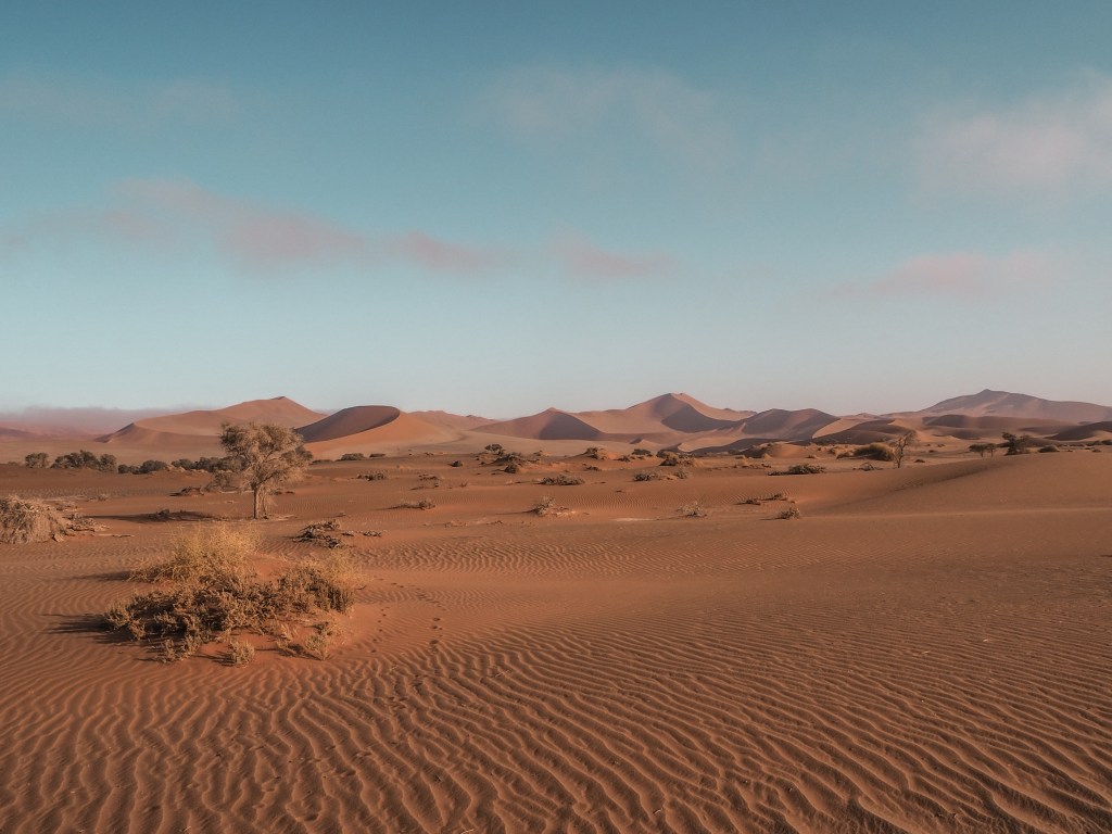 Namibia ist mit einer Fläche von 824.292 km2 in etwa doppelt so groß wie Deutschland und besteht aus vier wesentlichen Landschaften: Die Küstenregion im Westen ist geprägt durch die Namib Wüste, welche sich bis zu 150 km ins Landesinnere erstreckt. In Richtung Osten wird diese durch das Binnenhochland, zu dem auch die Hauptstadt Windhoek auf ca. 1700 Höhenmetern gehört, abgelöst. Im Osten des Landes dominiert das Kalahari Hochbecken und im Norden herrscht Buschland vor, welches bis hin über den sogenannten Caprivi Streifen bis nach Simbabwe reicht. Das ist auch die einzige dauergrüne Region in Namibia, denn Wasser ist hier Mangelware. Die meisten Flüsse sind sogenannte Trockenflüsse. Einen Strandurlaub könnt ihr nicht erwarten, dafür aber jede Menge Abenteuer im Gepäck auf eurer Rückreise.