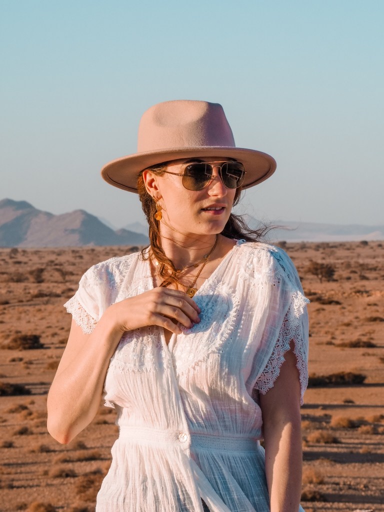 - Unsere ersten beiden Nächte haben wir im fast neuen und hippen The Desert Grace in der Nähe der Namib Wüste verbracht – die Unterkunft liegt in einer traumhaften Umgebung ca. 80 Fahrminuten vom Eingang des Namib Naukluft Parks entfernt. Gleich in der Nähe befindet sich das einmalige Dune Star Camp, schöner kann man Sterne nicht gucken. Euer Bett könnt ihr hier einfach auf eure Veranda rollen