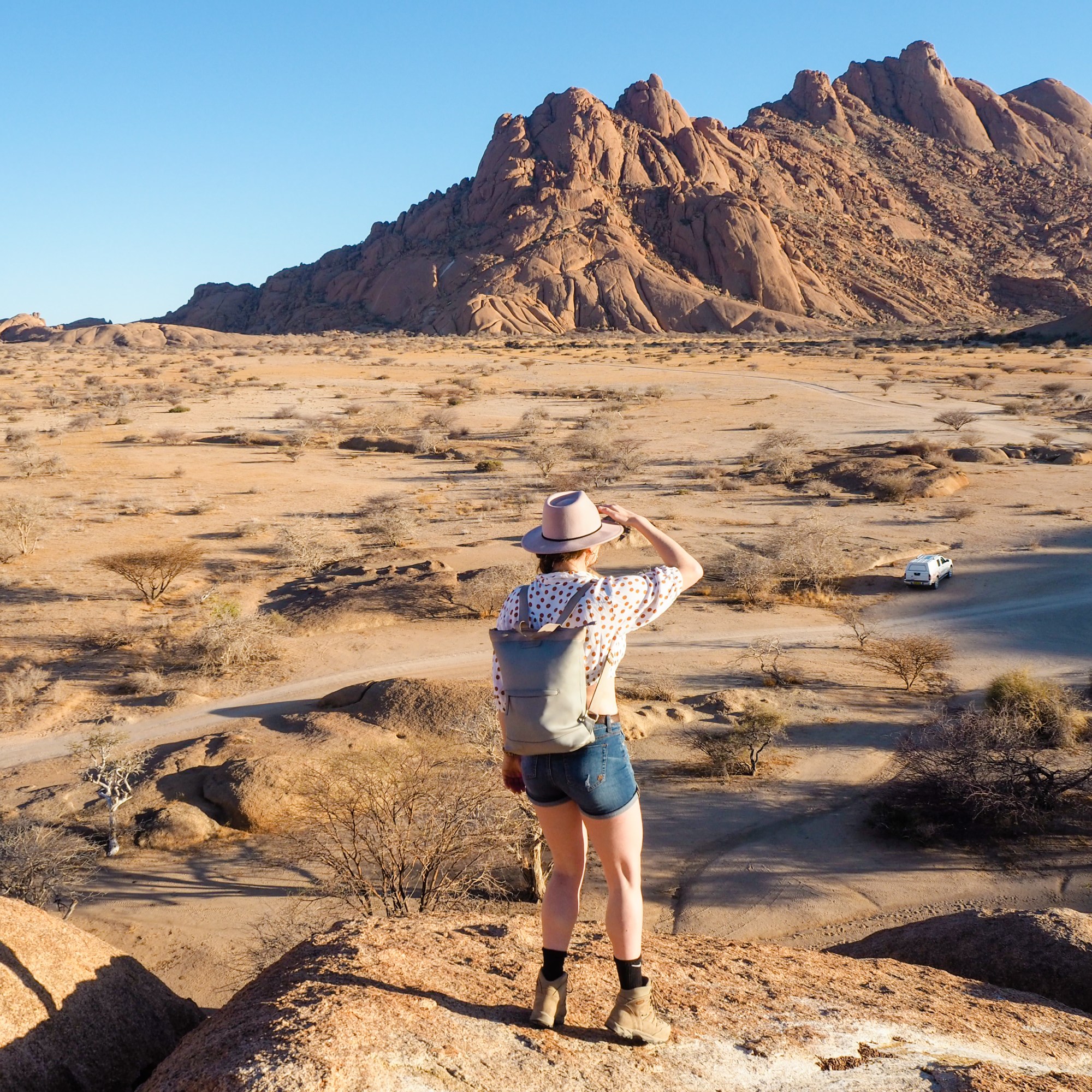 - Wir haben sehr lange zwischen einem Backpackrucksack und unseren Reisekoffern hin- und her überlegt. Unsere Entscheidung für die Koffer hat sich bewährt – es gibt genügend Lagefläche in den Autos und wirklich tragen müsst ihr euer Gepäck eigentlich nie. Auch eine Reisetasche ist empfehlenswert. Vergesst nicht euren Tagesrucksack für die Wertsachen und natürlich die technische Ausrüstung (Safari!). In den Nationalparks darfst du nicht aussteigen, auch solltest du (Wert-) Sachen niemals offen im Auto liegen lassen. Ein weiterer Tipp: Bringt einen Staubschutz mit – auf den Fahrtstrecken wird davon jede Menge aufgewirbelt und landet auf eurem Gepäck.