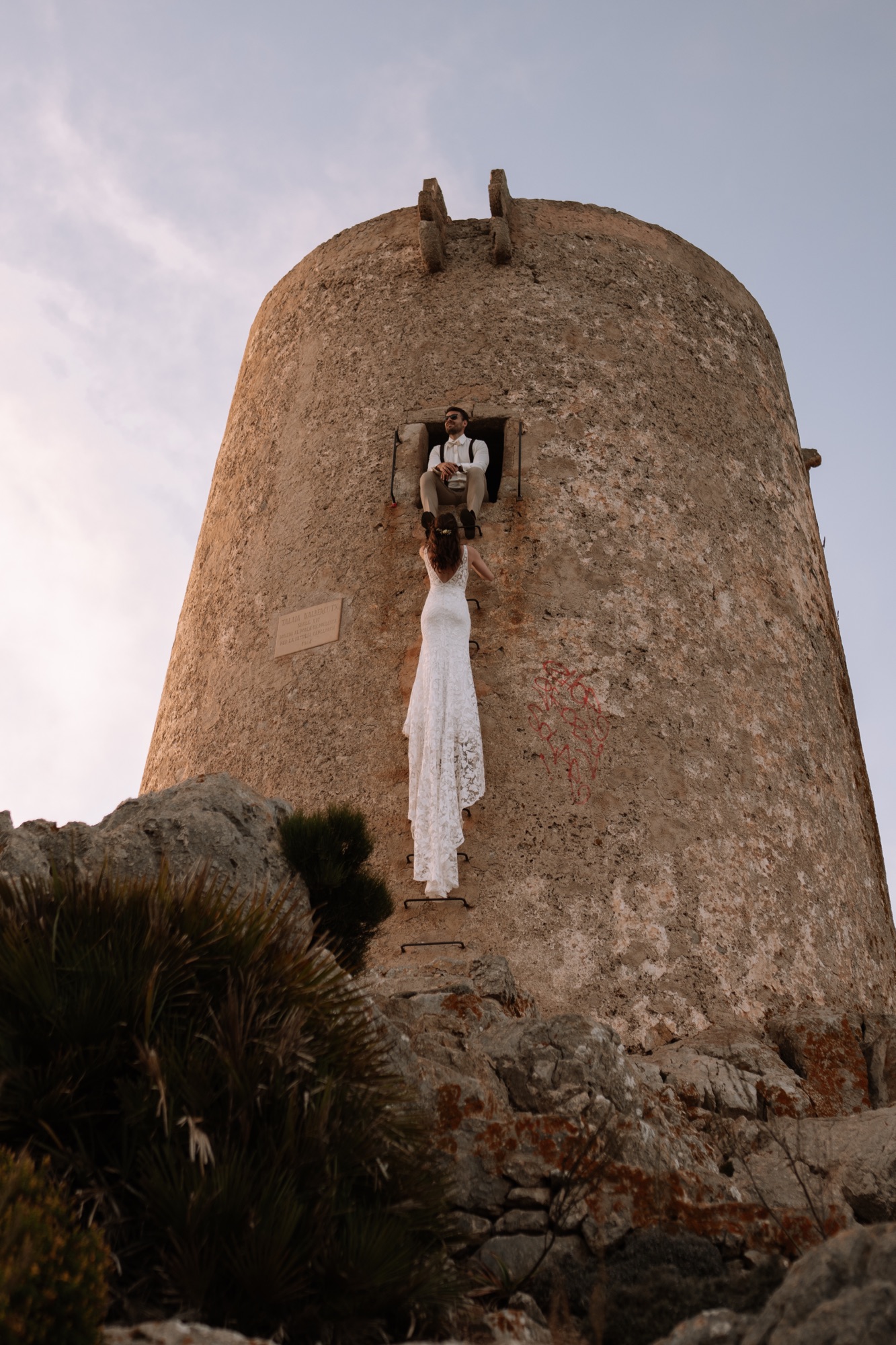 - Die Aussichtsplattform Mirador Es Colomer und das Cap Formentor, den wohl schönsten und spektakulärsten Aussichtspunkt der Insel, dürft ihr auf eurer Erkundungstour nicht verpassen. Super Informationen zur Anreise erhaltet ihr hier. Verbindet euren Ausflug, am besten bereits bei Sonnenaufgang, mit wunderschöne Orte und Buchten, wie zum Beispiel die Cala Figuera und Cala Murta. Alternativ kann ich euch auch den Platja de Formentor empfehlen, eine kleine Bucht, die mit einem Kiefern gesäumten Sandstrand überrascht. Tipp: Sunset über den Talaia d’Albercutx – dort waren wir für unser Hochzeitsshooting. Bester Ort für eine Drohnenaufnahme.
